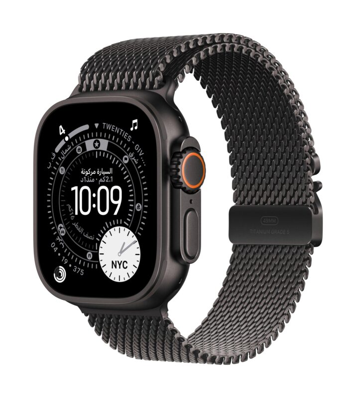 ساعة أبل الترا 3 جي بي إس + خلوي 49 ملم تيتانيوم أسود سوار ميلانيز تيتانيوم أسود – كبير