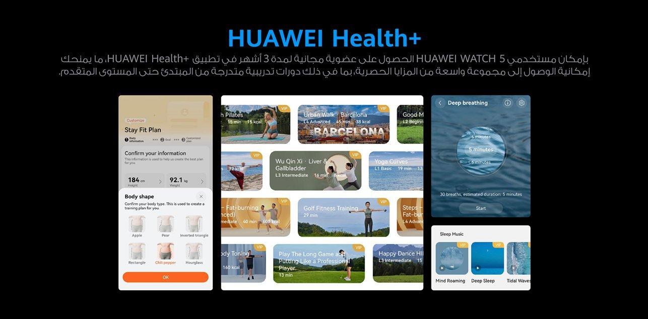 المعلومات على ساعة هواوي 5 الذكية، RATES-L19F - أسود