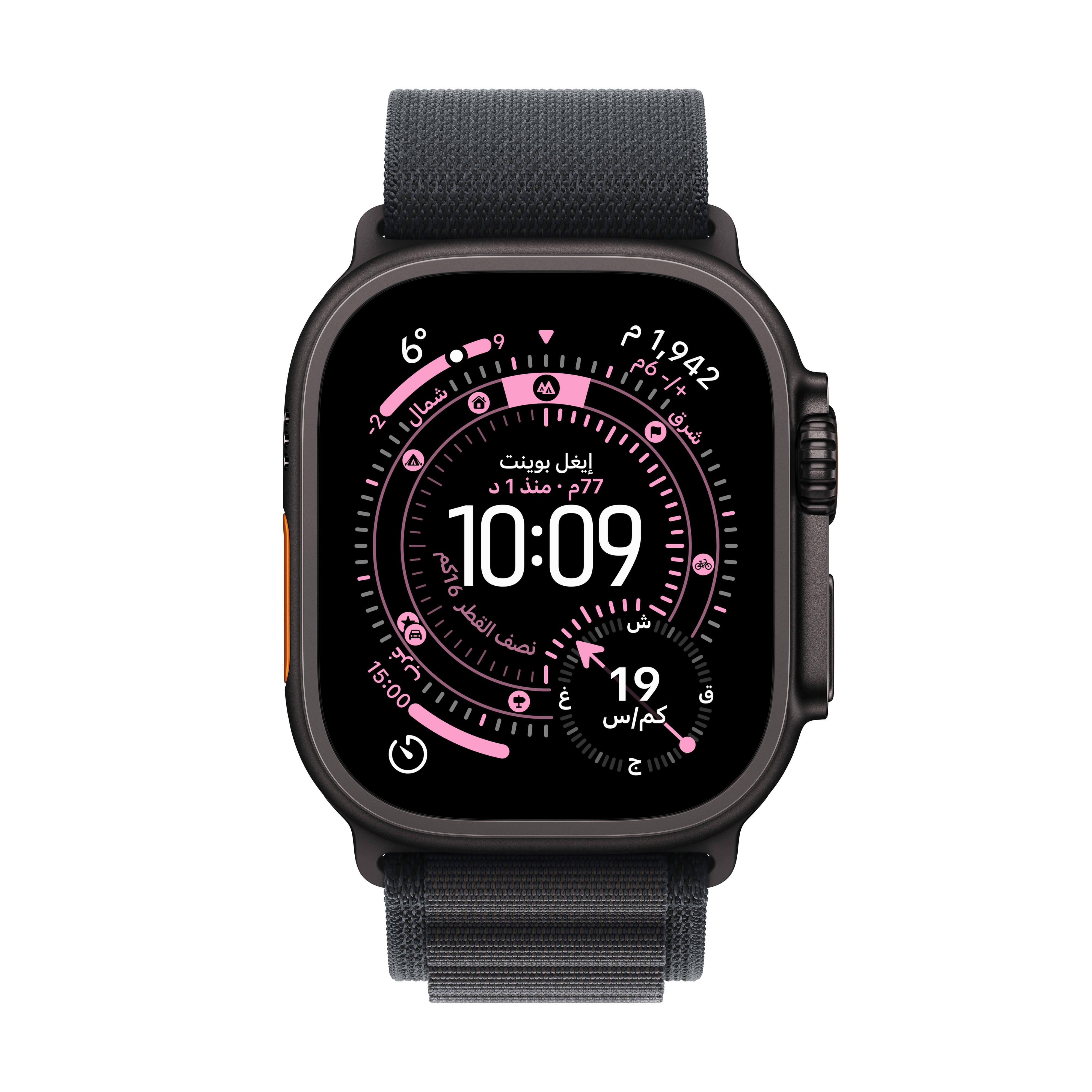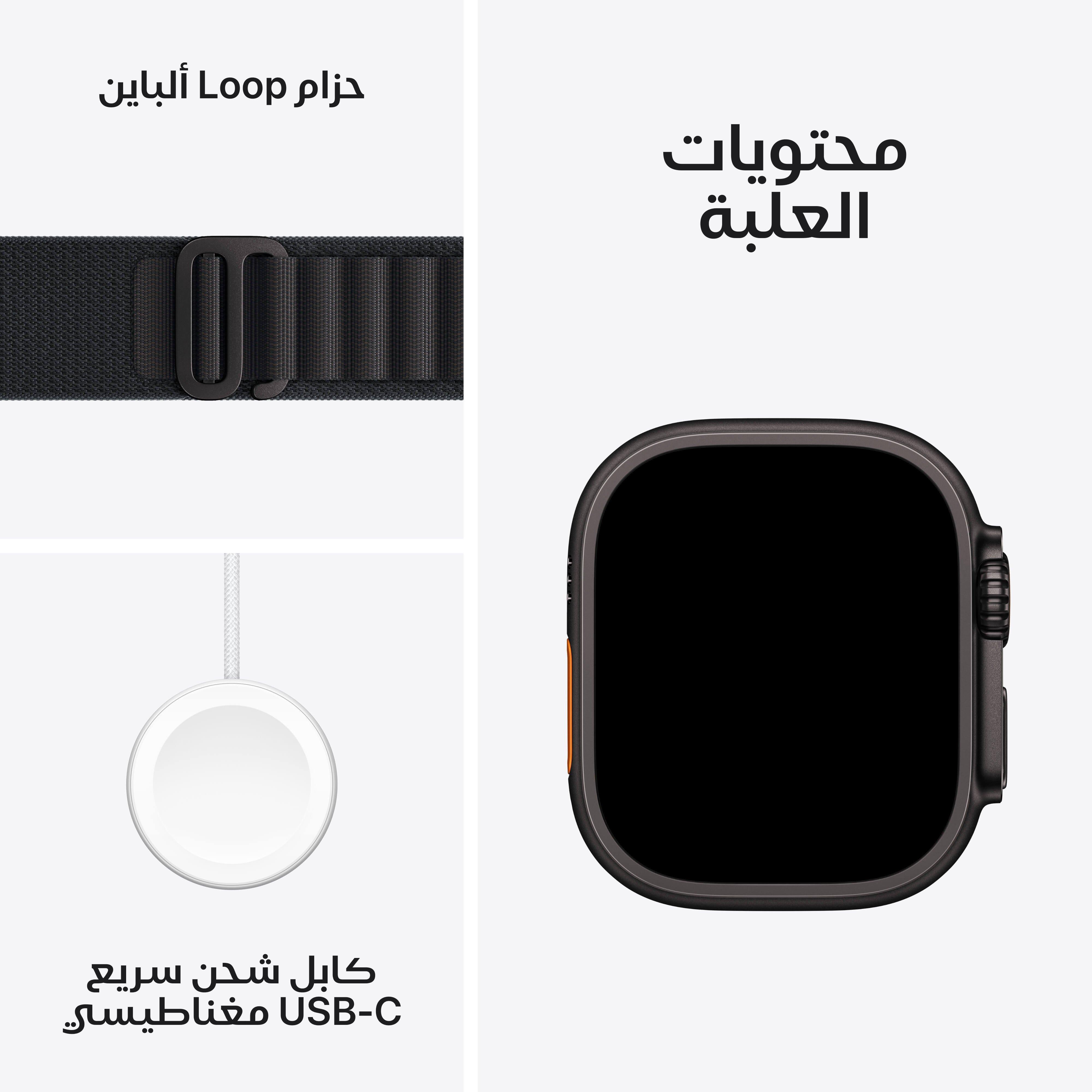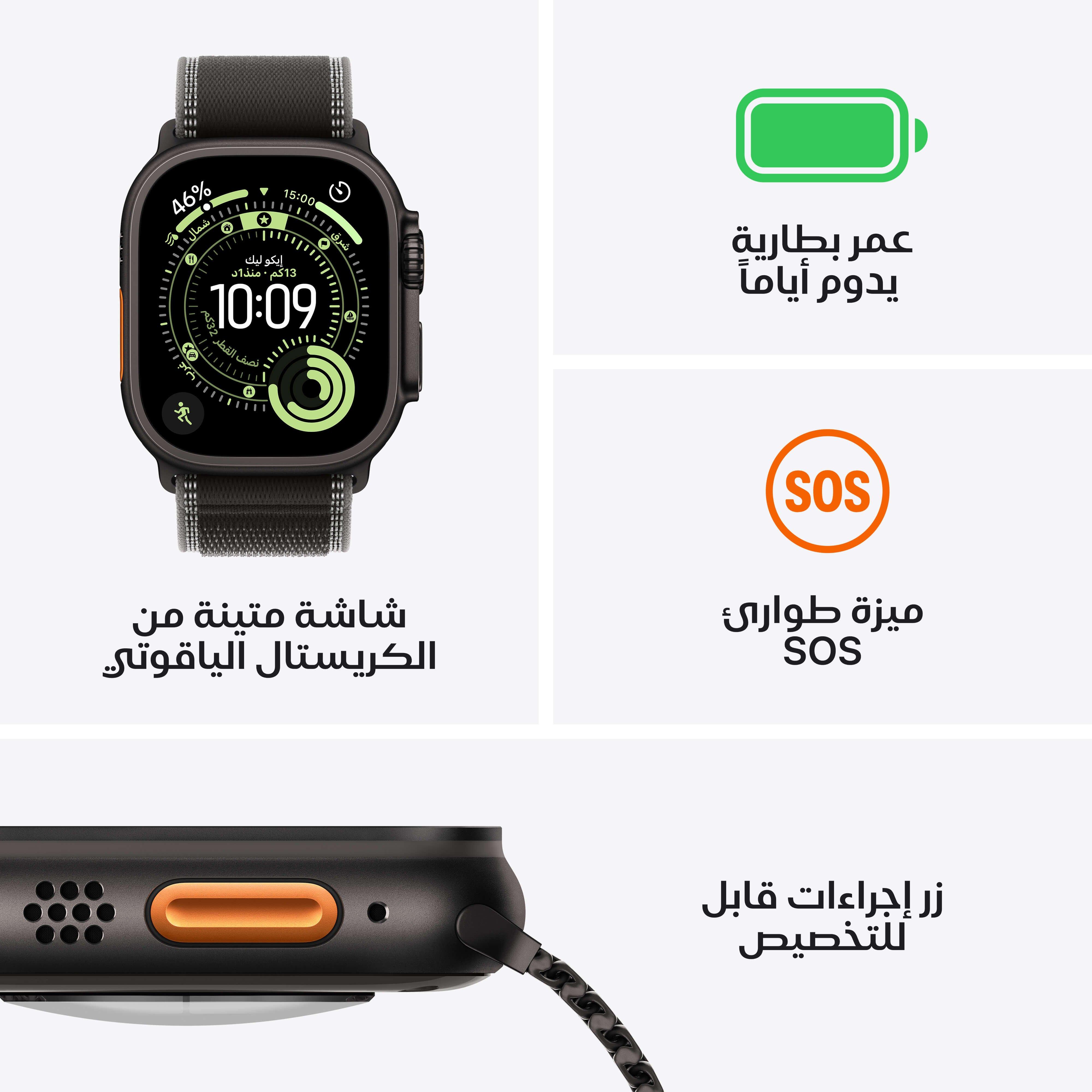المعلومات على ساعة أبل الترا 3 جي بي إس + خلوي 49 ملم تيتانيوم أسود سوار ميلانيز تيتانيوم أسود – كبير