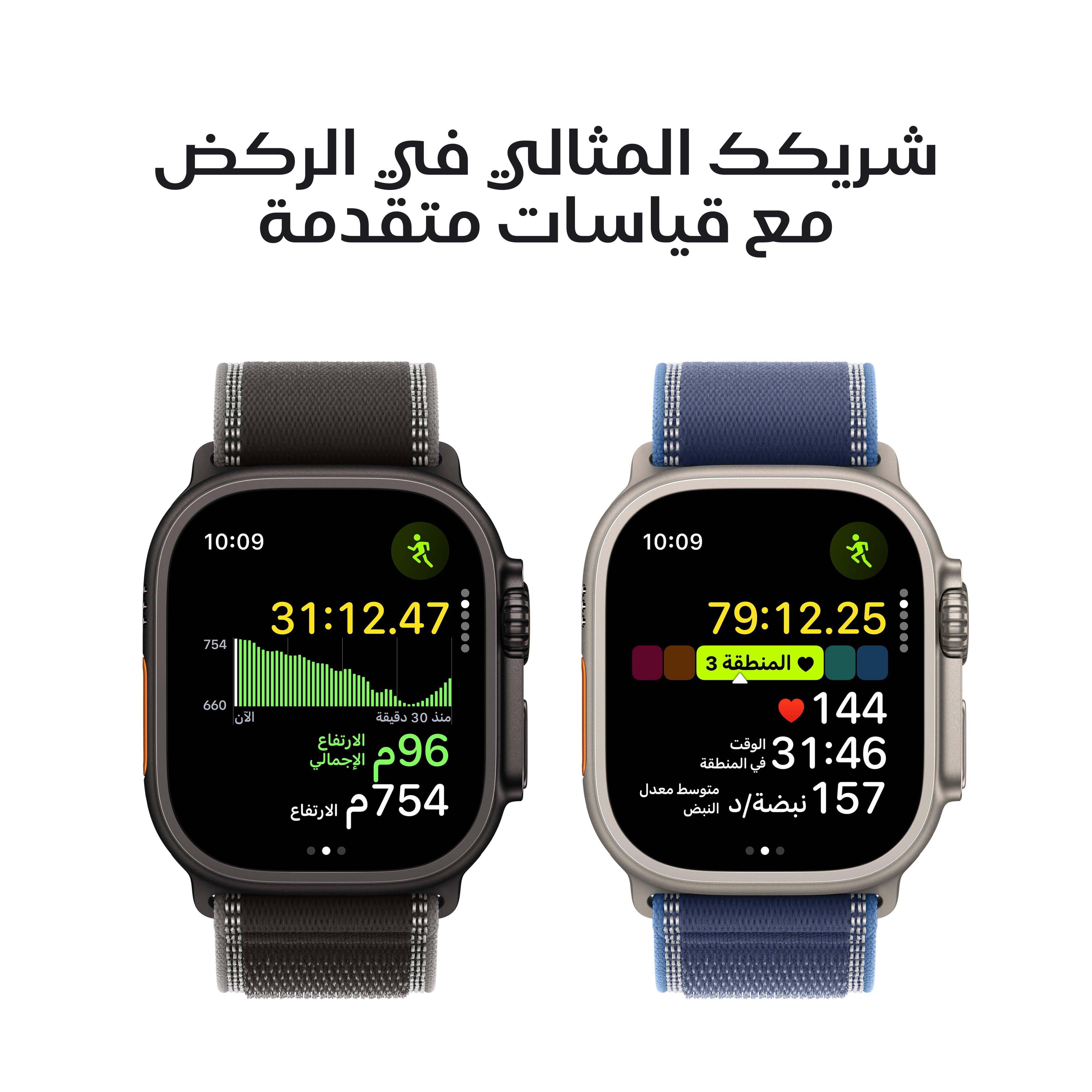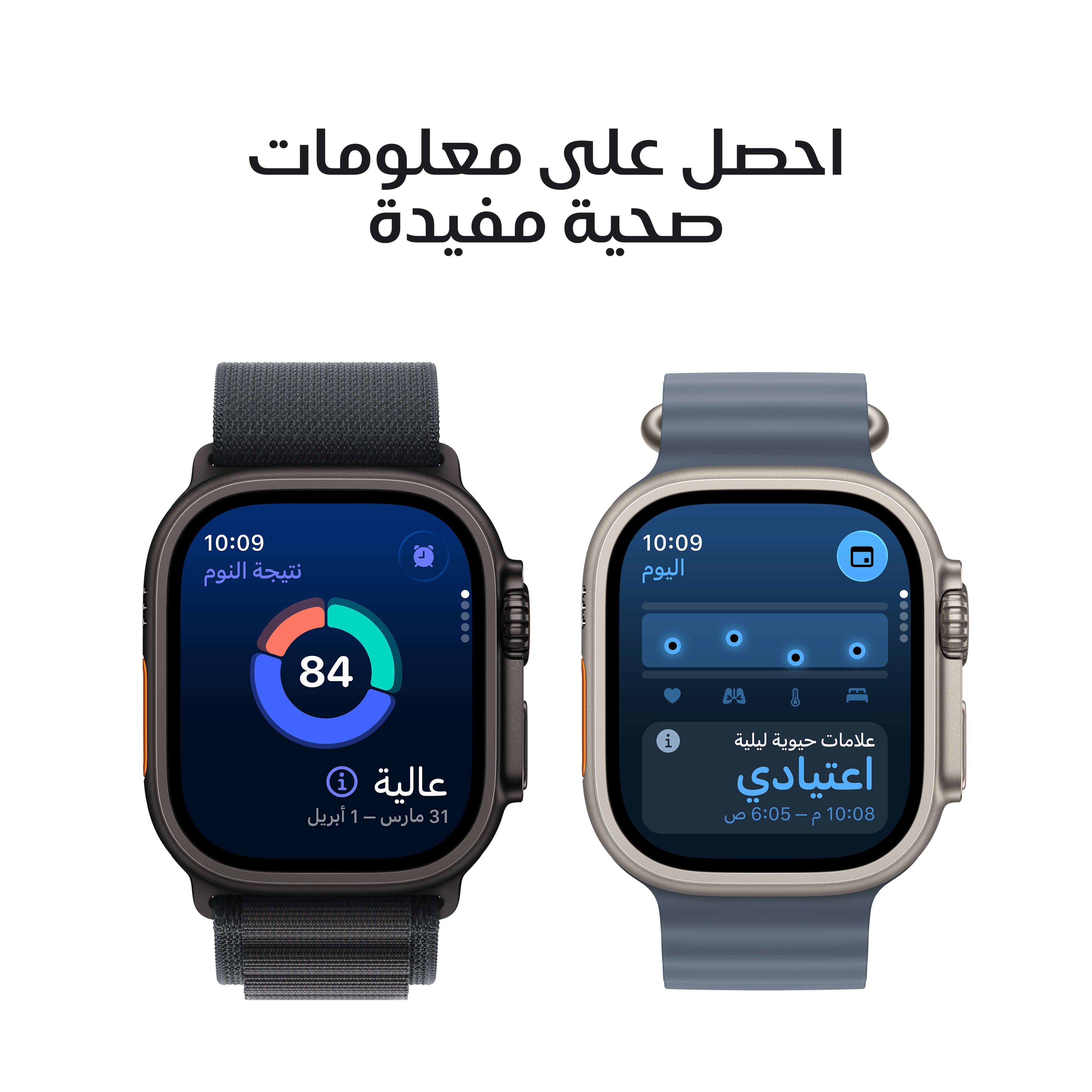 ساعة ابل الترا 2 الخلوية + جي بي اس مقاس 49 هيكل التيتانيوم الطبيعي مع سوار زرقاء – متوسط/كبير